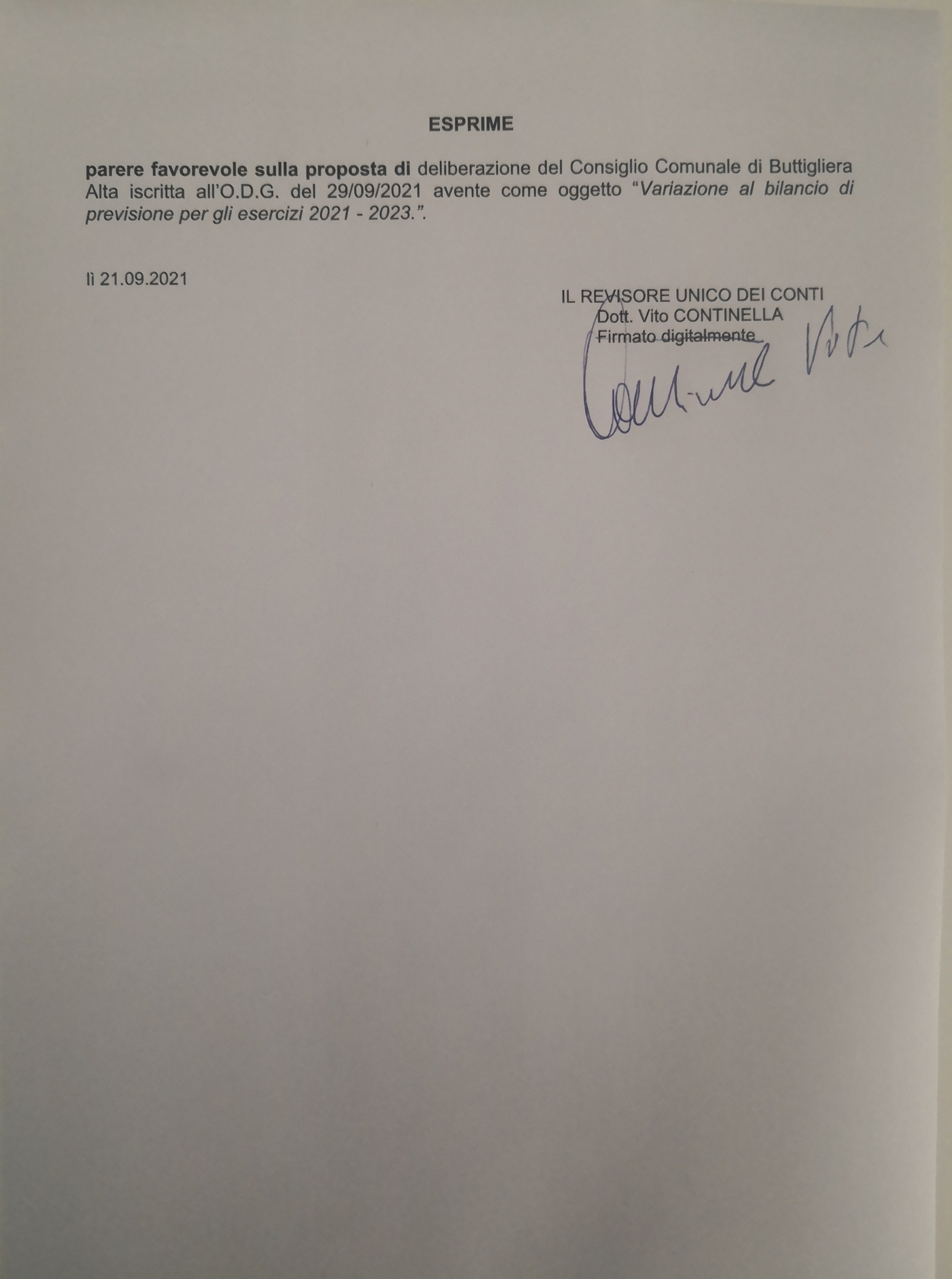 PARERE REVISORE - 2021 06 30 DCC - MODIFICHE ED INTEGRAZIONE REGOLAMENTO TARI PRT 7273 DEL 2021 06 24