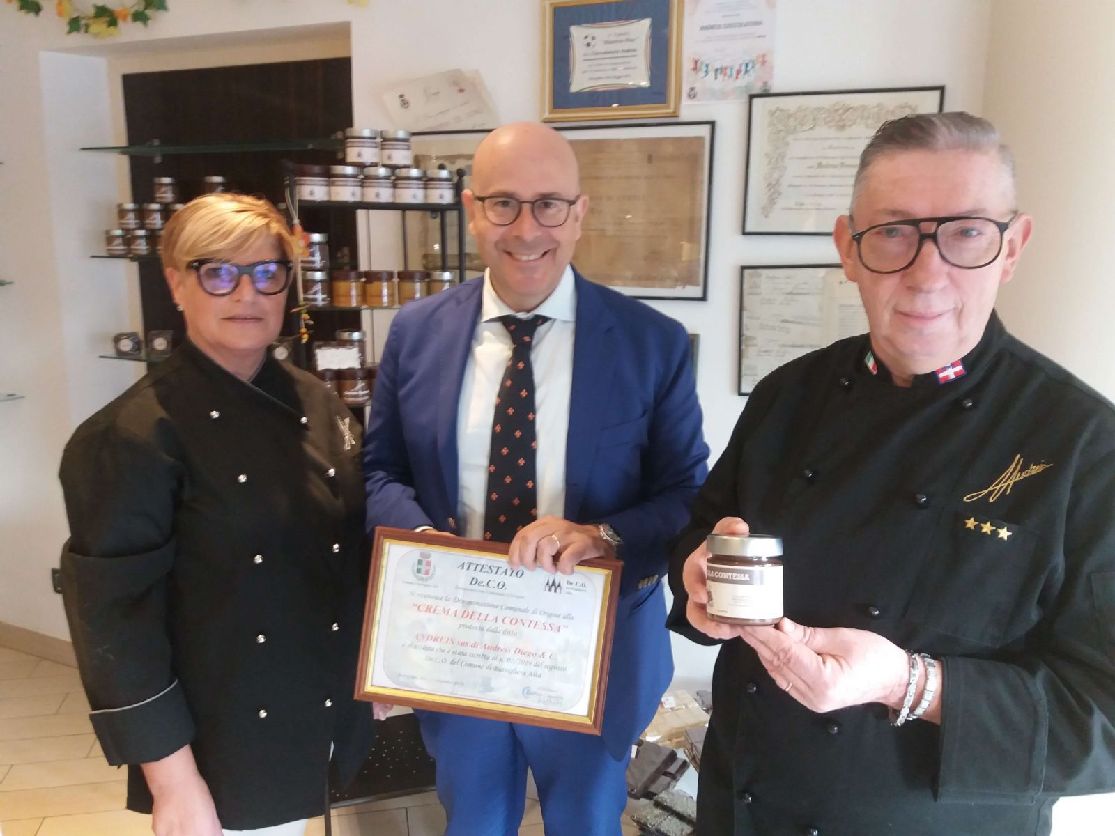 Assegnata dall’Amministrazione di Buttigliera Alta la seconda Denominazione Comunale di Origine: la certificazione che valorizza le produzioni tipiche del territorio cittadino. Dopo il “Pane del re”, del panificio “Pane madre”, di Marco Giaccone, tocca ora a una delle più storiche attività artigianali del paese: la pasticceria Andreis, che ha realizzato una produzione ad hoc, puntando sulle tradizioni e la storia buttiglierese. Il marchio De.C.O. premia la “Crema della Contessa”: un goloso cioccolato spalmabile, a base di nocciola, dedicato alla Contessa Clementina Carron, ultima discendente della nobile casata titolare del feudo di Buttigliera per conto dei Savoia, segretari di stato della casa reale. La Contessa è ricordata anche come benefattrice non solo di Buttigliera, ma animatrice di diverse opere pie in tutto il Torinese. Anche la seconda De.C.O. riprende quindi i frequenti contatti che, specialmente nel Risorgimento, ma ancora durante la Belle Epoque, Buttigliera ebbe con i reali sabaudi.