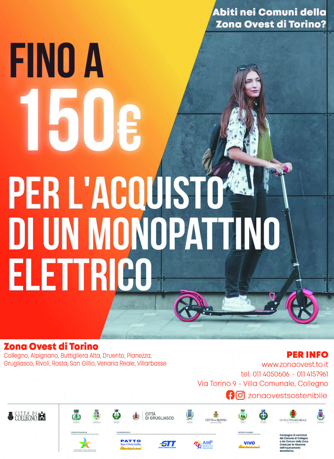 Partono da domani gli incentivi per chi vuole acquistare monopattini elettrici ed è lavoratore o studente residente a Collegno e nella Zona Ovest di Torino, città escluse per una manciata di residenti dai contributi del Governo.