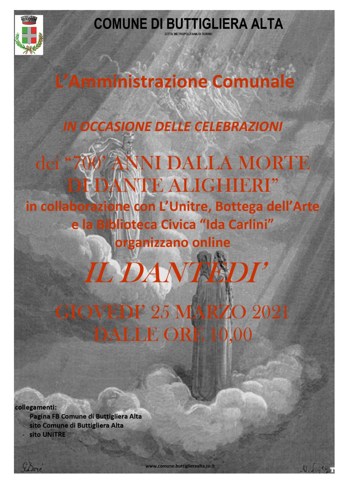 organizzano online il Dantedi’ Giovedi’ 25 Marzo 2021 dalle ore 10,00