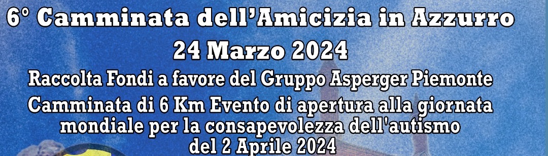 Sono aperte fino al 20 marzo le iscrizioni all'edizione 2024 della Camminata dell'Amicizia: l'iniziativa di sensibilizzazione sulle tematiche della Giornata Mondiale per la Consapevolezza dell'Autismo del 2 aprile e di raccolta fondi per le attività del Gruppo Asperger Piemonte.