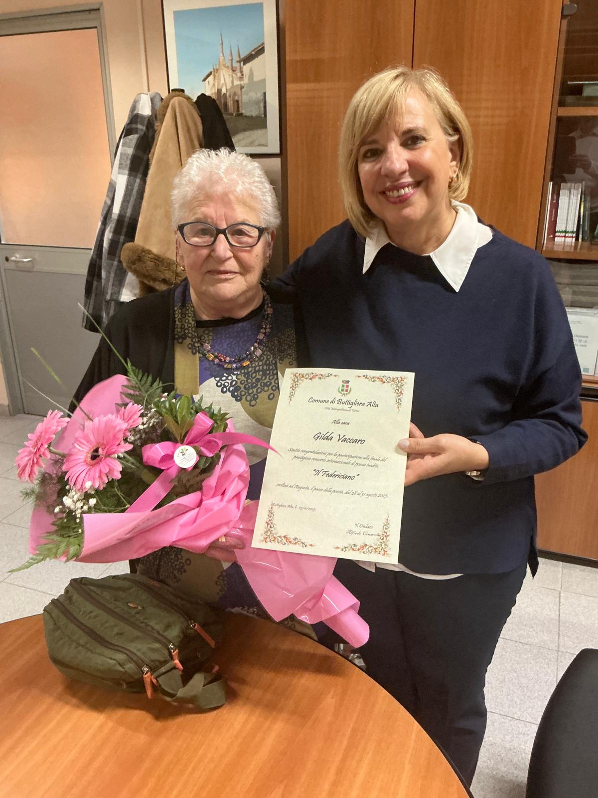 Gilda Vaccaro, di origini salernitane, di Battipaglia, vive a Buttigliera dal 1964, quando si è trasferita con il marito. Le poesie di Gilda raccontano e descrivono molti compaesani, lasciando testimonianza degli antichi mestieri, delle attività commerciali che ora non ci sono più. Una sorta di piccola storia in versi del cuore di Buttigliera. Una vicina di casa le suggerisce di provare a partecipare a un concorso, suggerendole “Il Federiciano”. Tra le molte opere realizzate in 50 anni di scrittura, Gilda ne sceglie una dedicata al suo paese natale: “Terra lontana”, riprendendo i sentimenti dei molti, che, come lei, sono emigrati dal sud al nord del Paese nel secondo dopoguerra. Inviata la poesia al concorso, la sorpresa di essere selezionata tra i finalisti. A fine estate è andata quindi ad Augusta, nel Ragusano, per la cerimonia finale di premiazione.