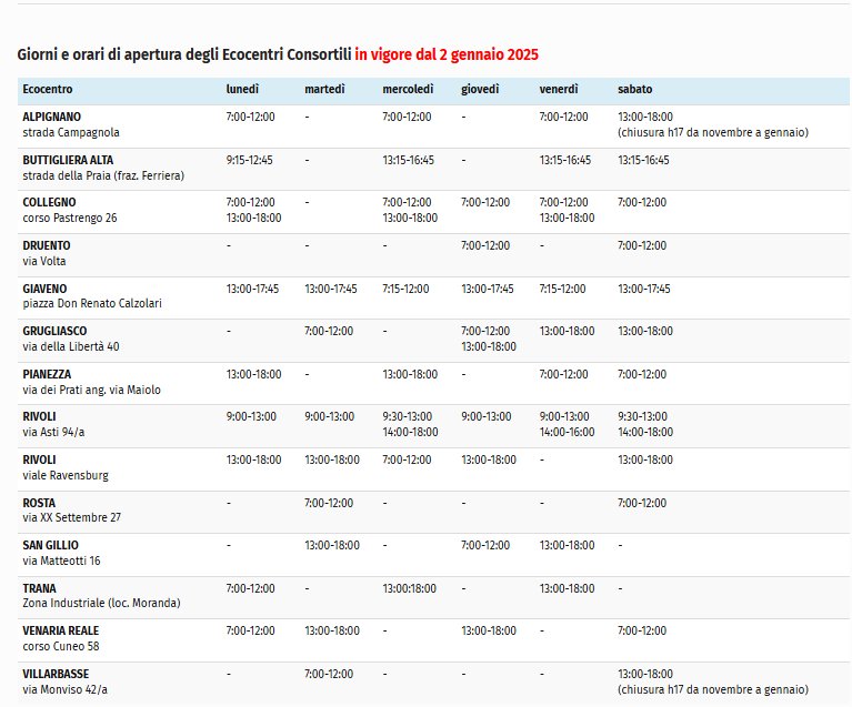 Si ricorda che il servizio è disponibile presso gli altri ecocentri del Consorzio Cidiu: orari e indirizzi allegati alla presente news.