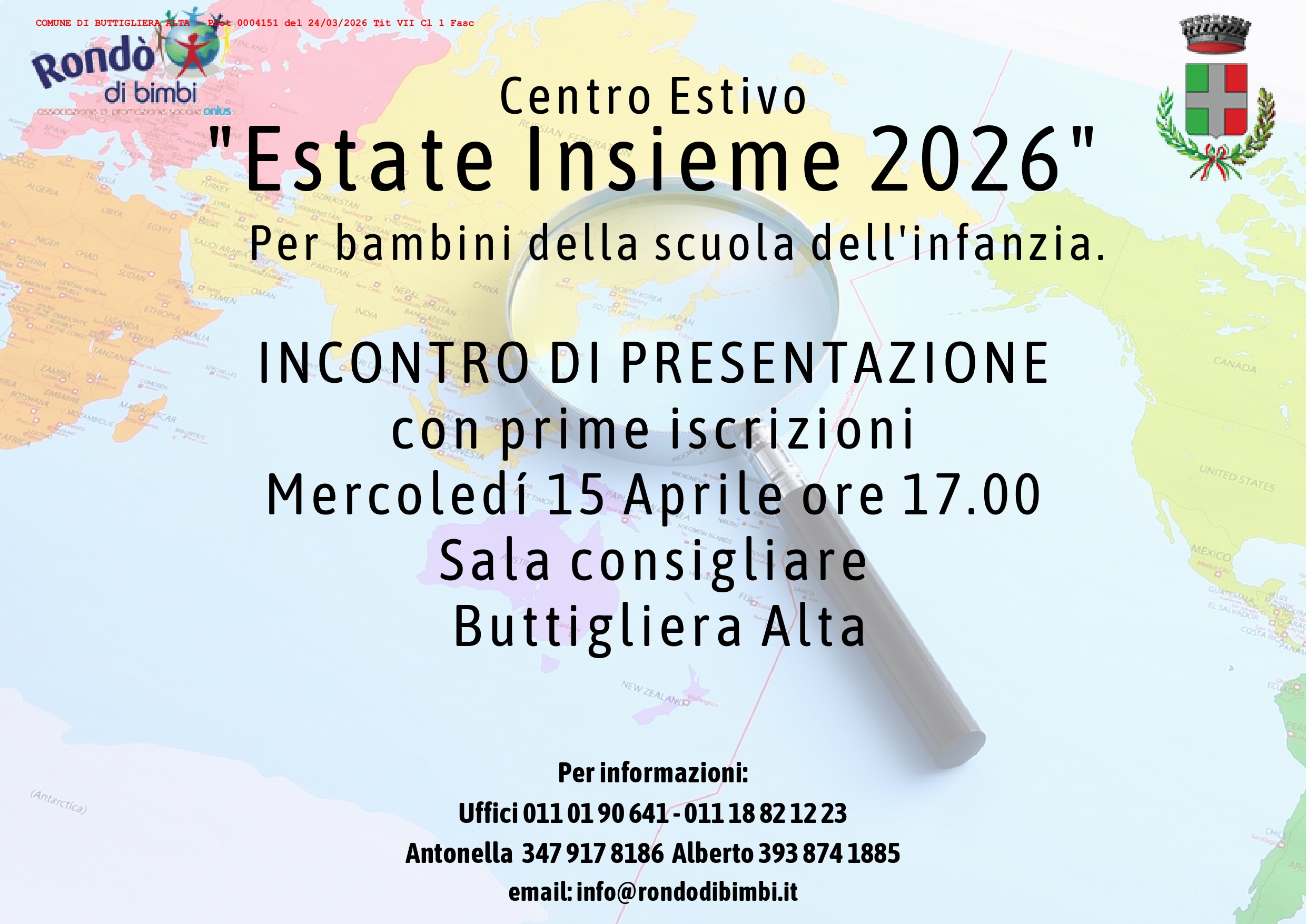 L'Associazione "Rondò di Bimbi" e l'Amministrazione Comunale organizzano un incontro informativo per le famiglie dei bimbi e delle bimbe delle scuole dell'infanzia per presentare il centro estivo dedicato a questa fascia di età previsto durante il periodo di chiusura delle scuole.