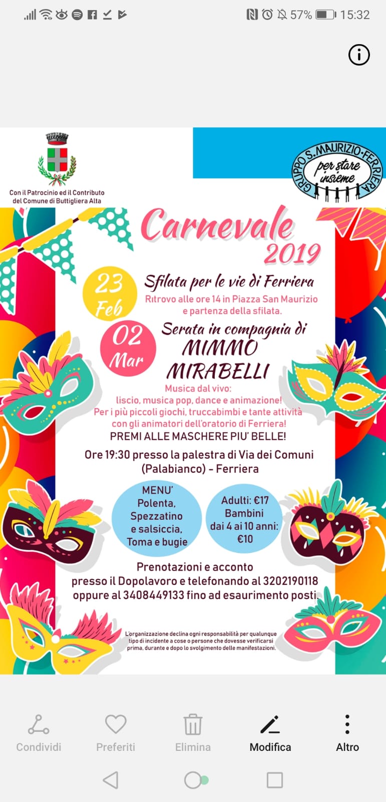 Anche quest’anno, il Gruppo San Maurizio Ferriera organizza, con il patrocinio e il contributo del Comune di Buttigliera Alta, le manifestazioni per animare il carnevale cittadino.
