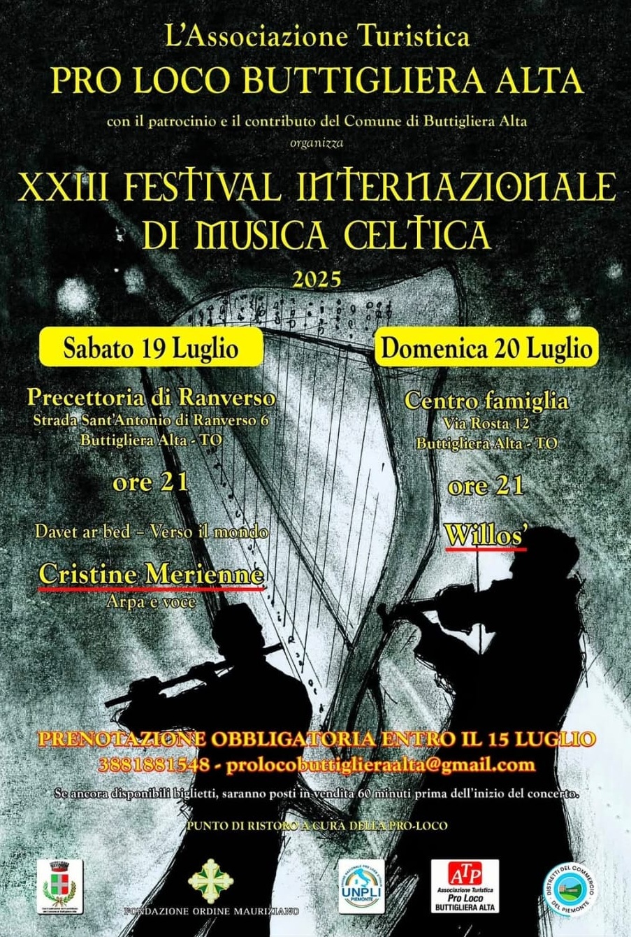 L'Amministrazione Comunale è lieta di patrocinare e invitare a partecipare alla 26ª edizione del "Festival internazionale di musica celtica" organizzato dalla Pro loco di Buttigliera Alta.