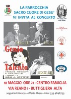 LA PARROCCHIA SACRO CUORE DI GESU’ VI INVITA AL CONCERTO IL GIORNO 10 MAGGIO ORE 21 PRESSO IL CENTRO FAMIGLIA VIA REANO 1 - BUTTIGLIERA ALTA.