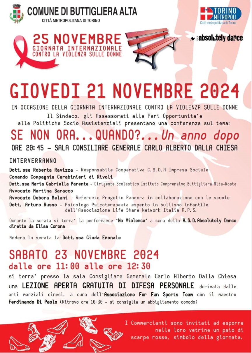 In occasione della Giornata Internazionale Contro la Violenza sulle Donne, l'Amministrazione Comunale, con gli Assessorati alle Pari Opportunità, Politiche Sociossistenziali e il Consigliere Delegato allo Sport, propone una lezione aperta gratuita di difesa personale, sabato 23 novembre dalle 11,00 alle 12,30 .