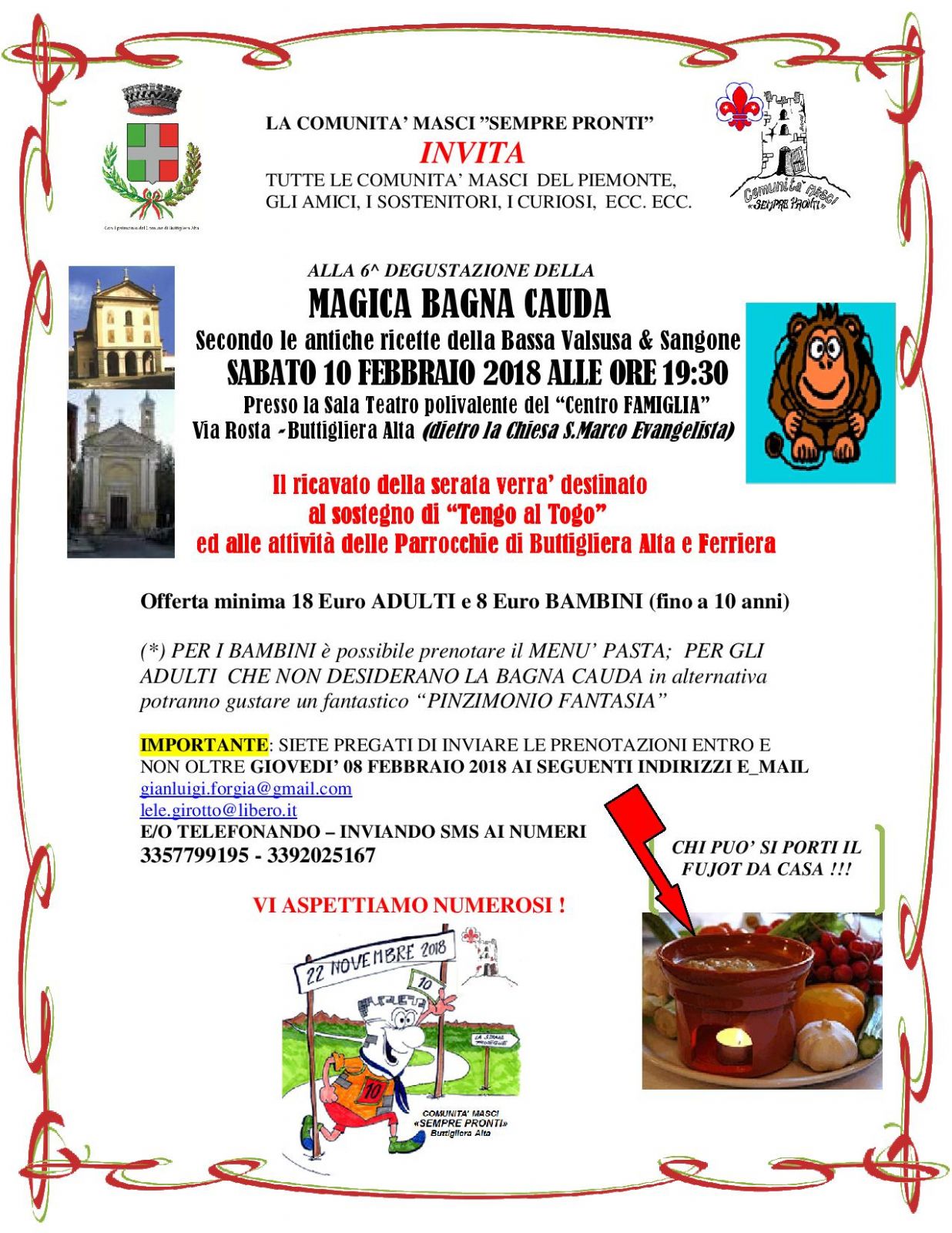 LA COMUNITA’ MASCI ”SEMPRE PRONTI” INVITA TUTTE LE COMUNITA’ MASCI DEL PIEMONTE, GLI AMICI, I SOSTENITORI, I CURIOSI, ECC. ECC. ALLA 6^ DEGUSTAZIONE DELLA MAGICA BAGNA CAUDA.