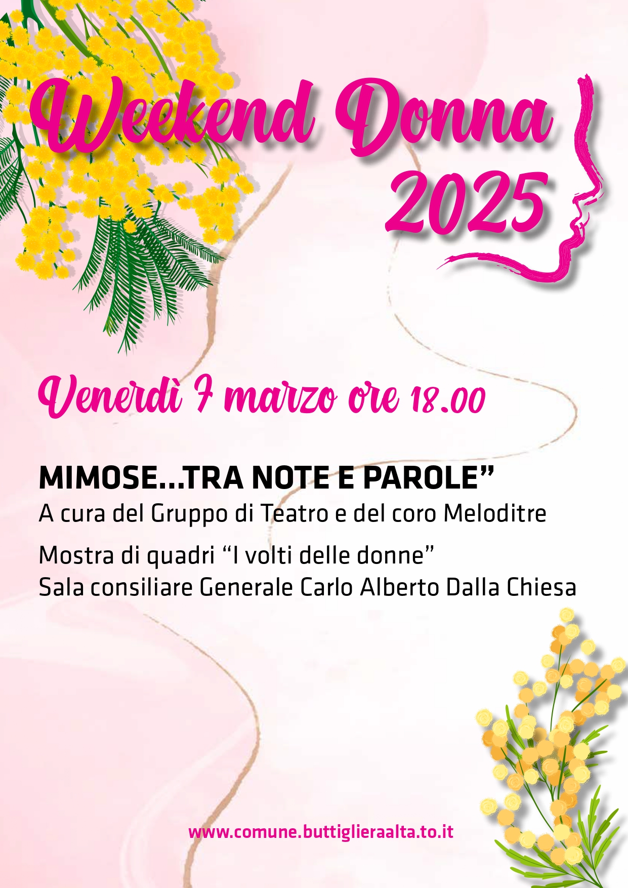 In occasione della Giornata Internazionale della Donna dell'8 marzo, l'Amministrazione Comunale, con l'Unitre buttiglierese organizza un evento di celebrazione della figura femminile, venerdì 7 marzo dalle 18 presso la sala consiliare "Dalla Chiesa" del municipio, in via Reno 3, con l'animazione culturale del Gruppo Teatro e del coro Meloditre dell'Unitre, accompagnata dalla mostra di quadri "I volti delle donne".