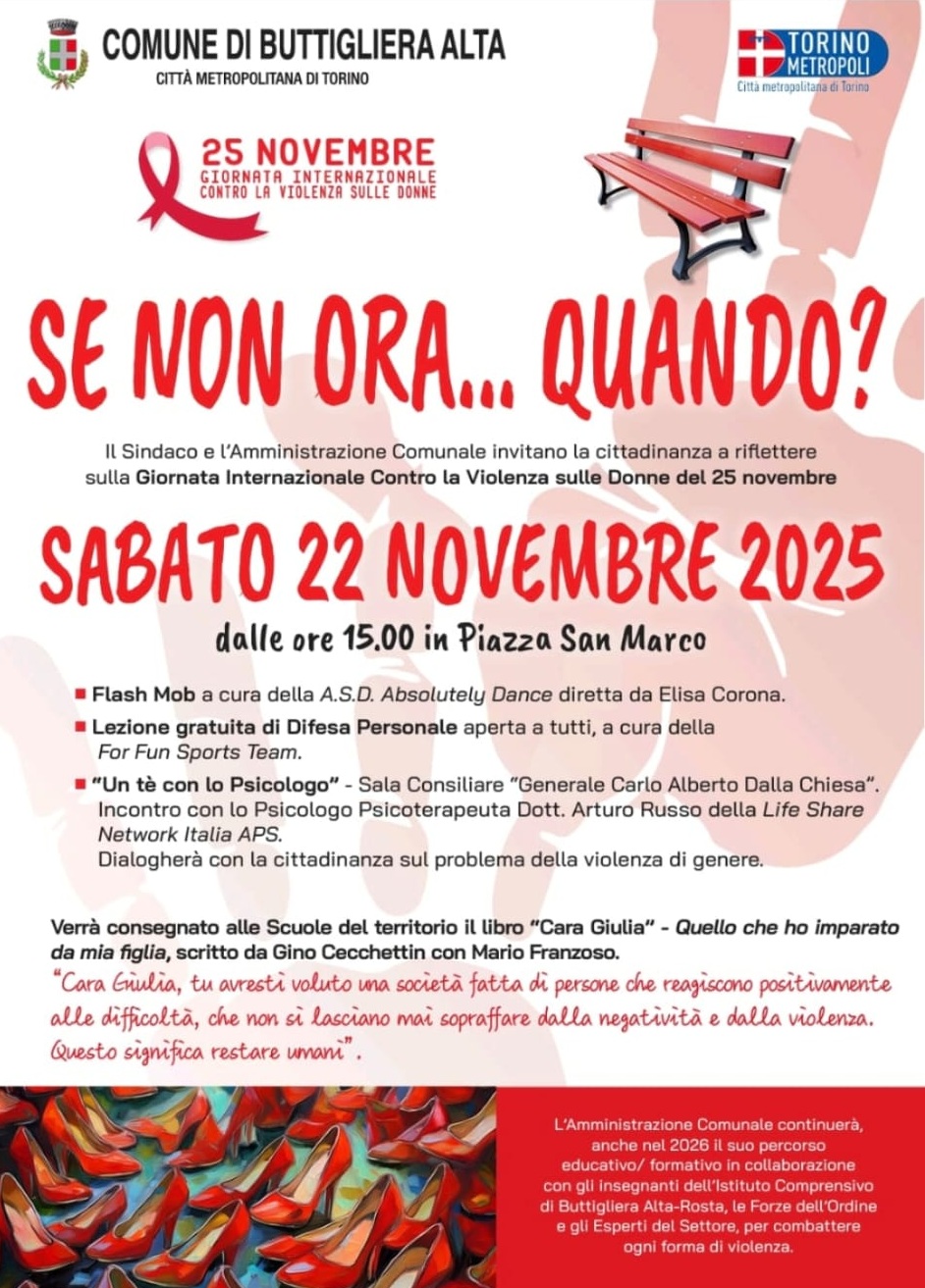 In occasione della Giornata Internazionale per l'Eliminazione della Violenza Contro le Donne del 25 Novembre, l'Amministrazione Comunale - Assessorati alle Pari Opportunità e allo Sport - promuove un pomeriggio di iniziative e riflessione, sabato 22 novembre dalle 15 in piazza San Marco.