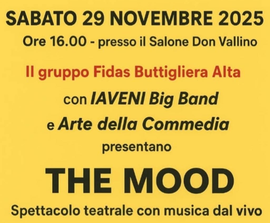 L'Amministrazione è lieta di patrocinare, contribuire e invitare a partecipare allo spettacolo promosso dalla Fidas buttiglierese, con "Iaveni big band" e "Arte della commedia" il prossimo sabato 29 novembre alle 16, presso il "Centro famiglia" di via Rosta.