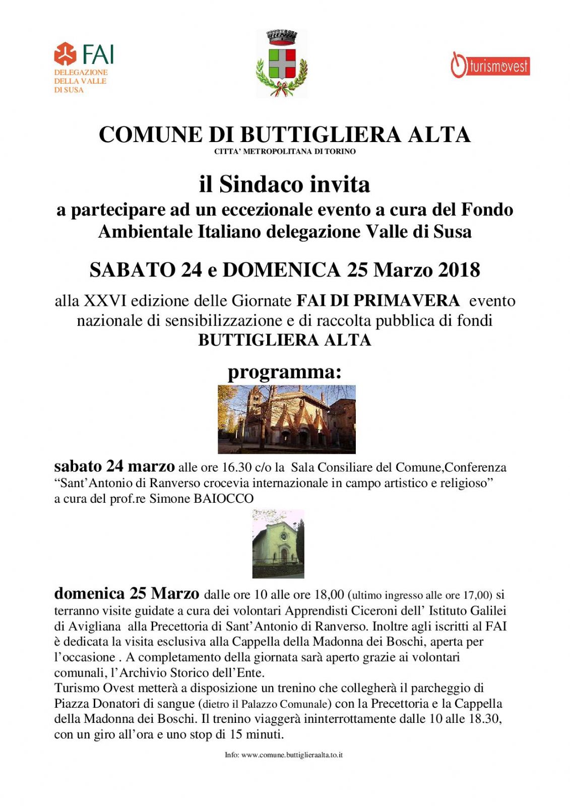 Il Sindaco invita a partecipare ad un eccezionale evento a cura del Fondo Ambientale Italiano delegazione Valle di Susa SABATO 24 e DOMENICA 25 Marzo 2018